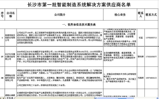 晗光智能被選為長沙市第一批智能制造系統解決方案供應商(附:長沙市第一批智能制造系統解決方案供應商名單發布)