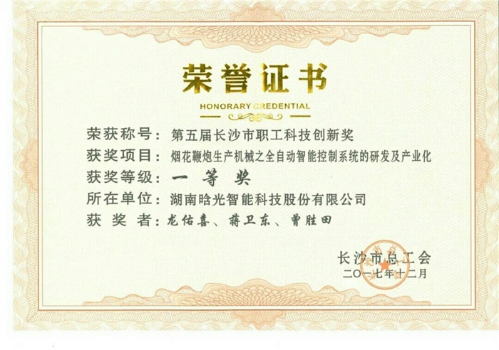 晗光智能喜獲長(zhǎng)沙市職工科技創(chuàng)新獎(jiǎng)